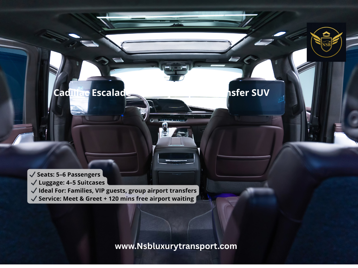 At NSB Luxury Transport, we focus on delivering premium chauffeur services with reliability and comfort. Our Cadillac Escalade airport transfer service ensures you travel in style with punctuality, professionalism, and luxury guaranteed.